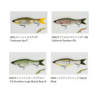 グランドエッジ最大の特徴は、ボディ上下に入ったスリットと8本の「EDGE」からなる「8 EDGE DESIGN」。スリットに水が通過することで過度なロールを抑えます。エッジを立ててカービングターンをするような感覚で操作でき、アングラーの意図した方向へルアーを導きます。意図的にリーリングで強弱を付けたり、ロッドアクションを追加することで、緩急自在なグライドアクションを演出可能。ジョイント部は小回りの効くフレキシブルモードとS字軌道を描きやすいタイトモードの2モードから選択できます。