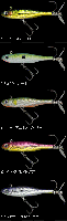 セオリーにとらわれない柔軟な発想を持つファクトリーチーム石井真。“スクールしているバスは全部釣る”と考える彼が全く新しいタイプのルアーを生み出した。その狙いはジグヘッドワームのスイミングよりもアピールし、テールスピンジグよりもフィネスなルアー。ボリュームは小さく、ディスタンスが取れて、レンジコントロールが自在で、バスをスレさせずに攻められる物。そんな夢のようなルアーを具現化したのが「ラッピングミノー」。一見、通常のプラグにも見えるボディは、ジグヘッド系フレームに浮力体となる発泡プラスティックを組み合わせたコンポジット。飛んで沈められる小粒なI字系ボディに、プロップをセットすることで微波動アピールとレンジコントロール性がプラスされ、ボディロールまでも発生します。ハードルアーとしては最弱に位置づけられるアピール度を持ち、やや頭下がりのスイミング姿勢で巻きはもちろん、ジグヘッド的なボトムトレースにも対応するという全く新しいタイプのハードルアーです。その「弱さ」ゆえにバイトが続きやすく、メジャーレイクのバスが相手でも連続ヒットを可能にします。