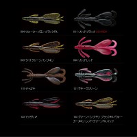 信頼のバルキー ベイト「エスケープ ツイン」がさらにボリュームアップ。最強のバルキーベイトとして生まれたのが「ビッグエスケープ ツイン」。ヘビーテキサス、ヘビーキャロライナでの使用はもちろん、ラバージグトレーラーとして対ビッグフィッシュ戦略に圧倒的な存在感で挑めます。重厚 なメインパドルが水を掻き乱し、2対の逆付けレッグとカールした触角が水を掴みます。ノーシンカー状態では水平に、しかもスローフォール。ヘビーテキサス でもキャロライナのようにシンカーだけを先に落とすノーシンカー水平フォールが可能です。マテリアルは高比重素材をメインにソルトを配合。単体で約18g の質量は抜群のピッチング操作感を誇ります。もちろんバスが好む味と匂いの特殊粒子を配合し、このボリュームであっても深いバイトを出して、確実にフッキ ングすることができます。ソフトベイトでは最強クラスの位置付けとなる「ビッグエスケープ ツイン」。その可能性は計り知れないものを秘めています。