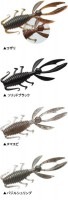 後方(ツメ側)重心設計から来るコンパクトベイトとしては破格の投げやすさ、そして抜群の飛距離。頭部から突き出たウサギの耳状のツメとボディ上部から出たツメといった別形状の2種類のツメが生み出す複雑な水流。さらには着底後のポーズで、それぞれのツメがタイムラグのある倒れ込みアクション等々……バスをバイトさせる数々の仕掛けを詰め込みました。なかでもC-4ジグと組み合わせてボトムジャークすると、左右へのドッグウォークアクションを実現。バスにその存在をアピールします。