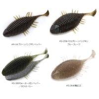 まるで三葉虫のように平たい形状のフラットヘッドゴビーだが、実際に手にしてみると意外に分厚く、その断面はゴビーシリーズ伝統の異型ヘキサゴンボディを踏襲しています。ボディに刻まれた深い逆リブがしっかりと水を掴むと同時に複雑で強い波動を発生させ、シャローはもとより15mオーバーの超ディープでもバスに気づかせ、リングワーム系独特の本気食いを誘います。ボディは単体で14g弱もあり(4インチ)、ノーシンカーリグでも納得のロングキャストを実現。深い逆リブ構造が厚いボディを曲げやすくさせるため、口の中で簡単に畳まれ抜群のフッキング性能も発揮します。フックポイントをしっかり隠せるスリット、スキッピングでも反らない肉厚ボディなど、実戦テストで鍛え上げられた高度な汎用性を保持。ノーシンカーリグ(ネイル入)のパワーグライドフォールが最大の特徴ですが、テキサスリグ、フットボールヘッドリグにも抜群の相性のよさを持っています。