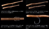 通常のセッティングでもワームが回転する事無く、真直ぐ落ちるストレートフォールでバスを魅了します。 フラッシュストレートを使用する事で、予めセンターにあけられた3つのホールを使う事で、より安定した 姿勢でバスを誘います!