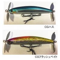 トップウォーターメーカー『ヒヨコブランド』のプロップテクノロジーPAT.を採用して開発された0.8mm厚のステンレス製プロップは、その重量によって回転始動時に抵抗を持たせてあります。回転に抵抗があることでランダムな水流と波動を生み出し、バスに記憶されにくく、スレにくいルアーに仕上がっています。プロップの穴をスクエアにすることで、回転時にカップワッシャーとヒートンに接触し、独自のクリック音と波動を発生させます。リアプロップの回転を妨げないよう、テールフックは排除しプロップの回転が命のスイッシャーとしての基本性能を高めています。