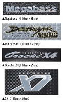 メタリックの質感が高級感溢れる新しいステッカーの登場です。種類は4種類、バックのエンボス加工がより一層の高級感を醸します。コンパクトなサイズですので、タックルボックスやタブレット型コンピューターなどお好きなところにご使用いただけます。